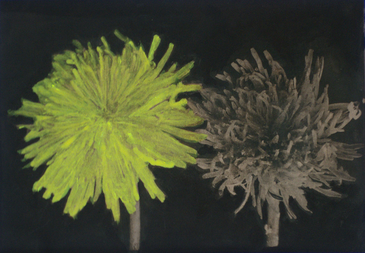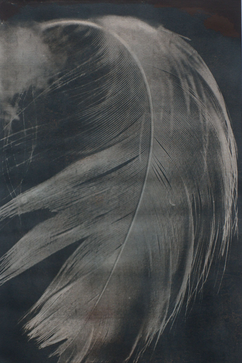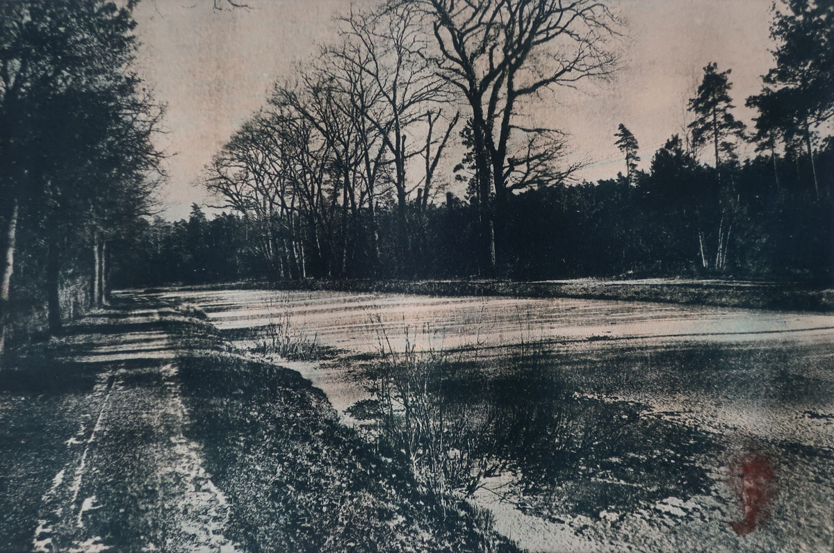 Ursprünglich benutzt die Cyanotypie das abzubildende "Sujet" als Schattenwerfer und liefert dabei Abbildungen im Farbton Berliner / Preußisch Blau. Ich fotografiere das Sujet, wandle es in eine Negativ-Maske um, belichte es im Sonnenlicht, entwickle es und färbe es mit natürlich erzeugten Polyphenolen aus Tee, Kaffee, Blättern etc. in einen Sepia-Farb-Ton ein. Das Bild bekommt dadurch einen historisierenden Charakter.